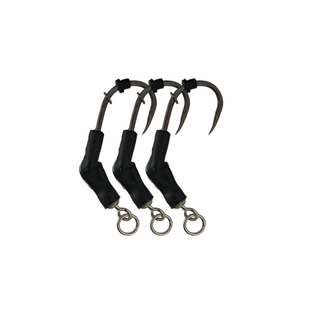 Product Description: Designed by catfish anglers for catfish anglers. CAT-TEX Fishing CAT-CLAWs are purpose-built for catfish. The spinner rig in carp fishing had a huge impact and from 2022 so has the catfish spinner rig. We use 100% stainless steel to build our CAT-CLAW Swivels because catfish demand reliability that brass swivels can’t deliver. Our hooks are engineered 3x stronger to handle the power of UK catfish. The specialist shrink tube is incorporated specifically to resist the abrasive pads of catfish mouths – something standard silicone tubing simply can’t handle. When we say built by catfish anglers, for catfish anglers, we mean it! Pack includes 3x CAT-CLAW Hook sections with 100% stainless steel CAT-CLAW swivels using NAMAZU Long shank hooks.